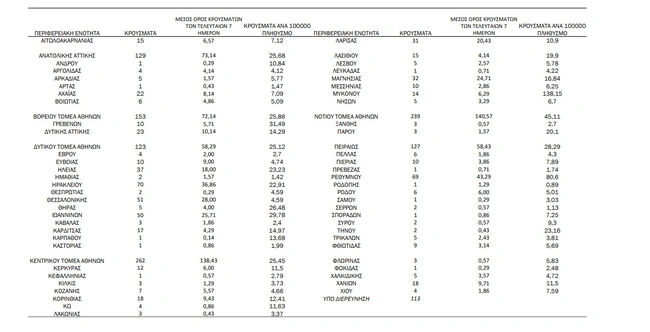 Tα κρούσματα στις περιφερειακές ενότητες που ανήκουν στην Αττική: