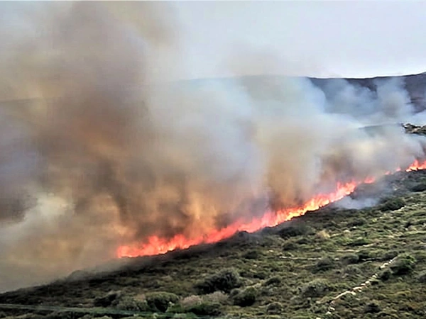 Η μάχη με τις φλόγες συνεχίζεται καθώς η φωτιά που έχει ξεσπάσει από το πρωί στη Χίο συνεχίζει να καίει στην περιοχή της Κατάβασης. Ήδη έχουν εκκενωθεί δύο οικισμοί, της Κατάβασης και της Σιδηρούντας, όπου οι φλόγες έχουν φτάσει στις αυλές σπιτιών, ενώ έχουν ενισχυθεί οι δυνάμεις και τα μέσα που επιχειρούν στην περιοχή.