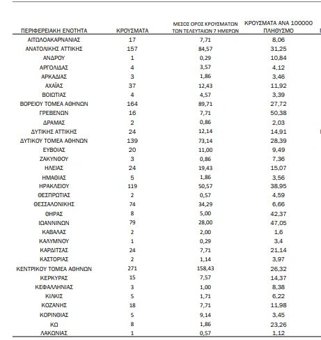 - Κεντρικός Τομέας Αθηνών: 271 κρούσματα