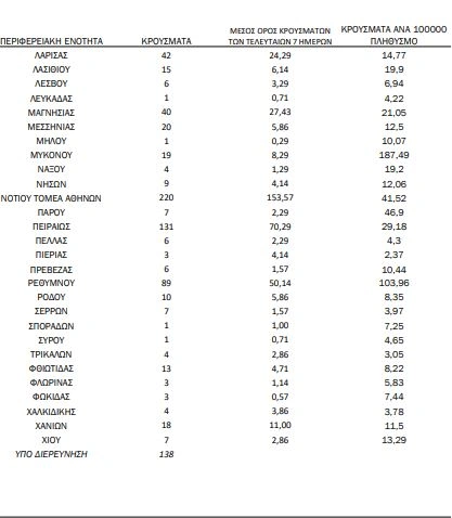 Tα κρούσματα στις περιφερειακές ενότητες που ανήκουν στην Αττική: