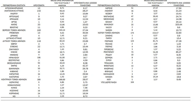 Tα κρούσματα στις περιφερειακές ενότητες που ανήκουν στην Αττική: