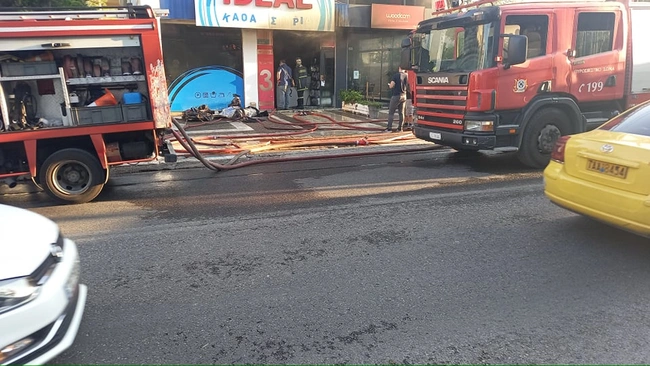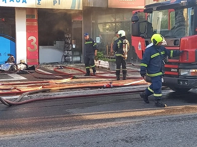 Από την πυρκαγιά έχει καταστραφεί το εσωτερικό της επιχείρησης, ενώ έχουν προκληθεί και σημαντικές υλικές ζημιές έξω.