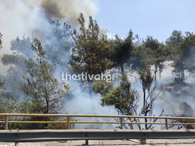 Φωτιά ξέσπασε το μεσημέρι της Τρίτης στο περιαστικό δάσος της Θεσσαλονίκης, στο ύψος του Αγίου Παύλου. Στο σημείο, σύμφωνα με το thestival.gr έχουν σπεύσει επιχειρούν για την κατάσβεση 23 πυροσβέστες με 10 οχήματα. H φωτιά καίει παραπλεύρως της περιφερειακής οδού.