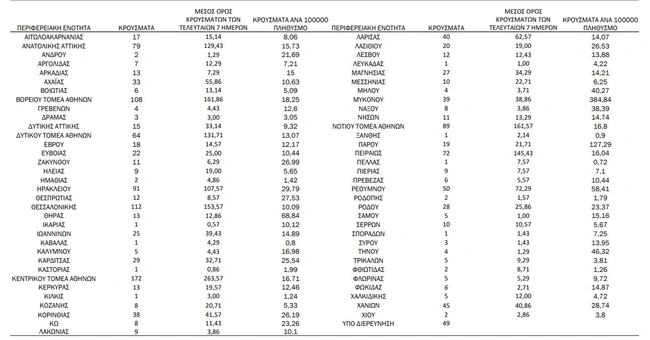 Αναλυτικά η γεωγραφική κατανομή των κρουσμάτων