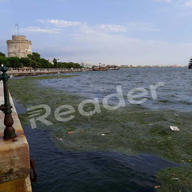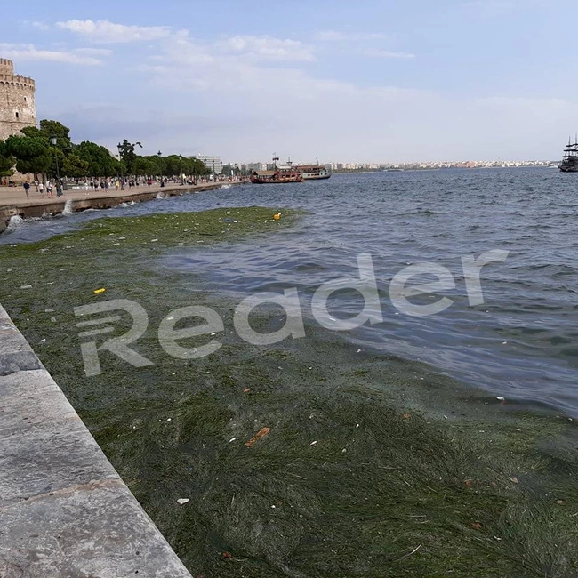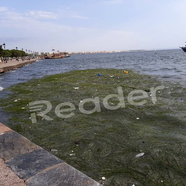 Το παραλιακό μέτωπο της Θεσσαλονίκης γέμισε με απορρίμματα και φύκια εξαιτίας των ρευμάτων και του αέρα. Μια πλατιά «λωρίδα» από φύκια και σκουπίδια που επιπλέουν, χαλάει την εικόνα του Θερμαϊκού στη λεωφόρο Νίκης.