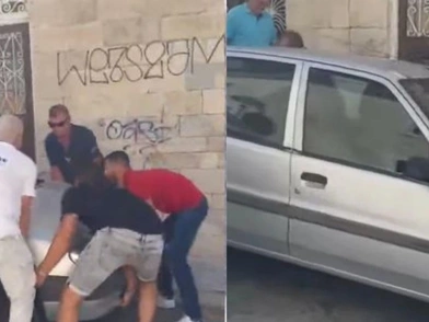 Τέσσερις άνδρες σήκωσαν ένα αυτοκίνητο επειδή δεν μπορούσε να περάσει πούλμαν στο κέντρο της Ερμούπολης, στη Σύρο.