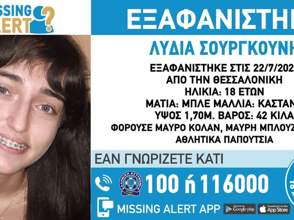 Χάθηκαν τα ίχνη της 18χρονης Λυδίας Σουργκουνή από τη Θεσσαλονίκη κι αμέσως σήμανε συναγερμός στην ΕΛ.ΑΣ. και στο «Χαμόγελο του Παιδιού» που εξέδωσε missing alert. Ειδικότερα, στις 22/07/2021, εξαφανίστηκε από την περιοχή της Θεσσαλονίκης, η Σουργκούνη Λυδία, 18 ετών.