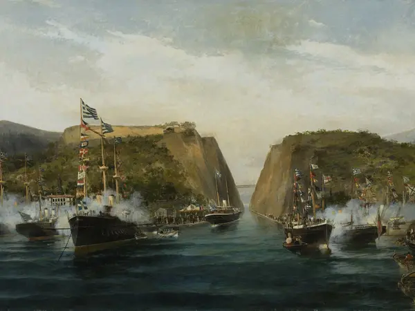 Ο Καποδίστριας, προβλέποντας τη σημασία που θα είχε η διώρυγα στην ανάπτυξη της Ελλάδας, ανέθεσε τη σχετική μελέτη σε μηχανικό. Η δαπάνη εκτιμήθηκε σε 40.000.000 χρυσά φράγκα, το ποσό κρίθηκε υπερβολικό και η προσπάθεια εγκαταλείφθηκε. Το 1869 άνοιξε η διώρυγα του Σουέζ και τον Νοέμβριο του ίδιου χρόνου η Κυβέρνηση Ζαΐμη ψήφισε νόμο «περί διορύξεως του Ισθμού», όπου εταιρεία ή ιδιώτης θα αναλάμβανε την κατασκευή και εκμετάλλευση του έργου. Η μελέτη του έργου έγινε από τον Ούγγρο στρατηγό István Türr, ο οποίος ίδρυσε τη Διεθνή Εταιρεία της Θαλασσίας Διώρυγος της Κορίνθου (Société Internationale du Canal Maritime de Corinthe). Στο έργο συμμετείχαν Ούγγροι και Σλοβάκοι μηχανικοί, όπως ο Ίστβαν Τουρ και ο Μπέλα Γκέστερ από το Κόζιτσε της σημερινής Σλοβακίας. Λόγω έλλειψης κεφαλαίων το έργο ολοκληρώθηκε από εταιρεία του Ανδρέα Συγγρού το 1893. Οι εργασίες για τη διώρυγα εγκαινιάστηκαν την 23 Απριλίου 1882 παρουσία του βασιλιά Γεωργίου Α' και η χρήση της ξεκίνησε στις 25 Ιουλίου του 1893.