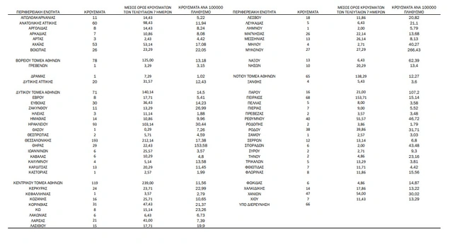Tα κρούσματα στις περιφερειακές ενότητες που ανήκουν στην Αττική: