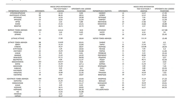 Tα κρούσματα στις περιφερειακές ενότητες που ανήκουν στην Αττική: