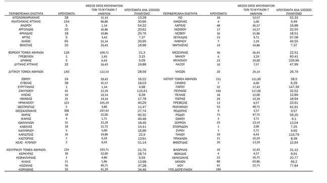 Tα κρούσματα στις περιφερειακές ενότητες που ανήκουν στην Αττική: