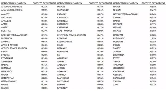Στα καλά... νέα με τον δείκτη θετικότητας κάτω από το 1% είναι τα εξής νησιά: