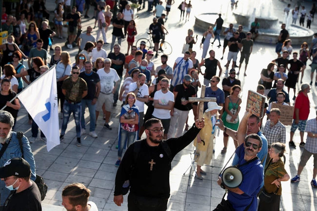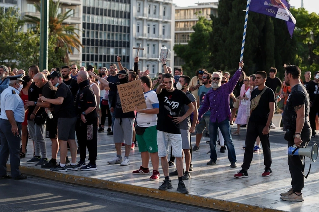 Νέα συγκέντρωση πραγματοποίησαν στο Σύνταγμα αρνητές του εμβολίου κατά του κορονοϊού. Οι διαδηλωτές διαμαρτυρήθηκαν κατά της υποχρεωτικότητας των εμβολιασμών.