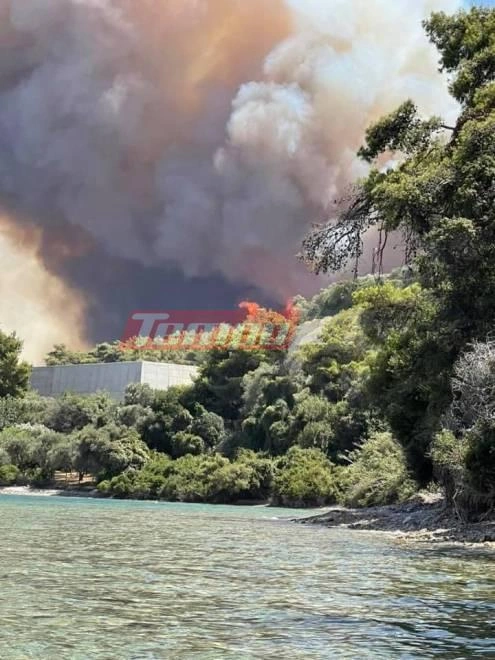 Επίσης σκάφη του λιμενικού βρίσκονται σε ετοιμότητα στην παραλία Καμαρών και Άκολης για να μεταφέρουν άτομα δια θαλάσσης εαν χρειαστεί.