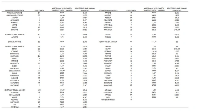 Tα κρούσματα στις περιφερειακές ενότητες που ανήκουν στην Αττική: