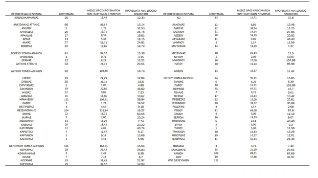 Tα κρούσματα στις περιφερειακές ενότητες που ανήκουν στην Αττική: