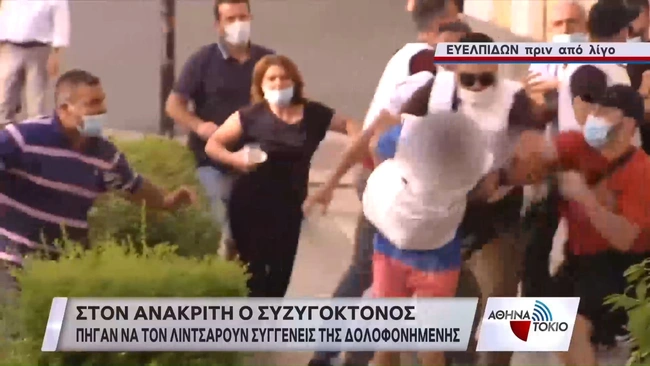 Ο καθ' ομολογίαν δολοφόνος έφτασε λίγο μετά τις 9:00 στα δικαστήρια της Ευελπίδων, όπου υπήρχε συγκεντρωμένο πλήθος, που τον αποδοκίμασε και του πέταξε μπουκάλια, καφέδες κι άλλα αντικείμενα. Μεταξύ αυτών και συγγενείς της άτυχης κοπέλας, οι οποίοι του έριξαν μπουνιές και κλωτσιές πριν προλάβουν τελικά οι αστυνομικοί της Ασφάλειας να τον γλιτώσουν από το λιντσάρισμα και να τον βάλουν σηκωτό στο κτίριο όπου θα απολογηθεί για το ειδεχθές έγκλημα που διέπραξε.