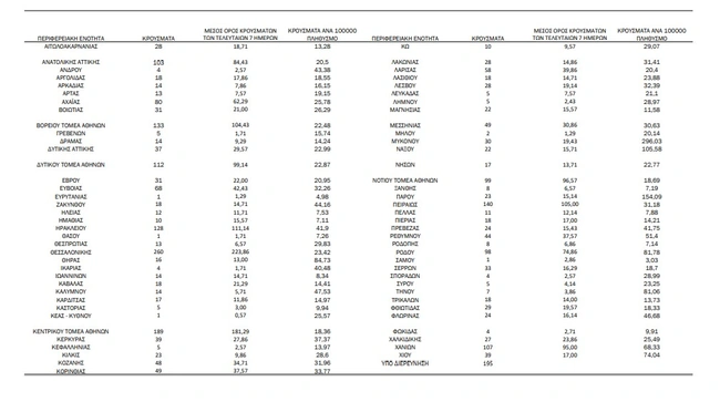 Tα κρούσματα στις περιφερειακές ενότητες που ανήκουν στην Αττική: