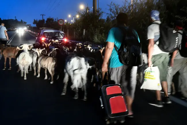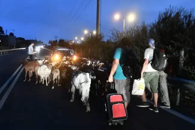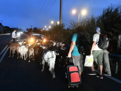 Κάτοικοι φεύγουν με τις βαλίτσες και τα ζώα από τη φωτιά (πηγή: Eurokinissi)