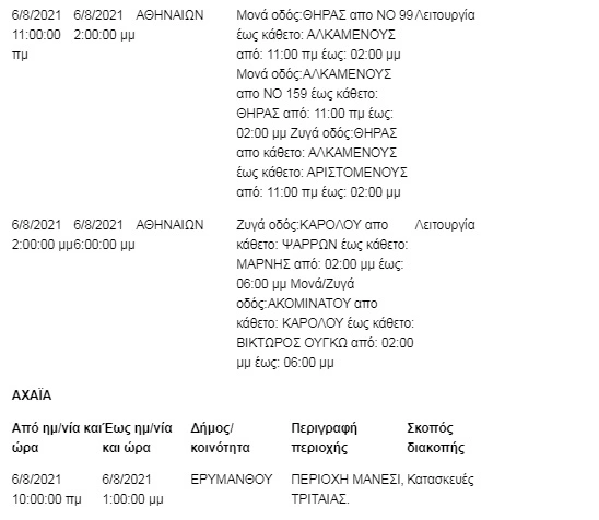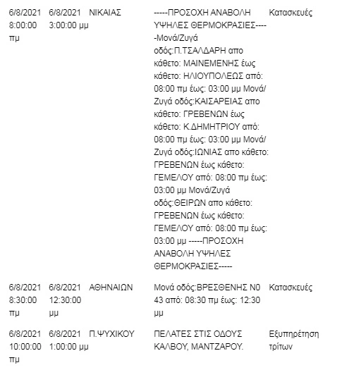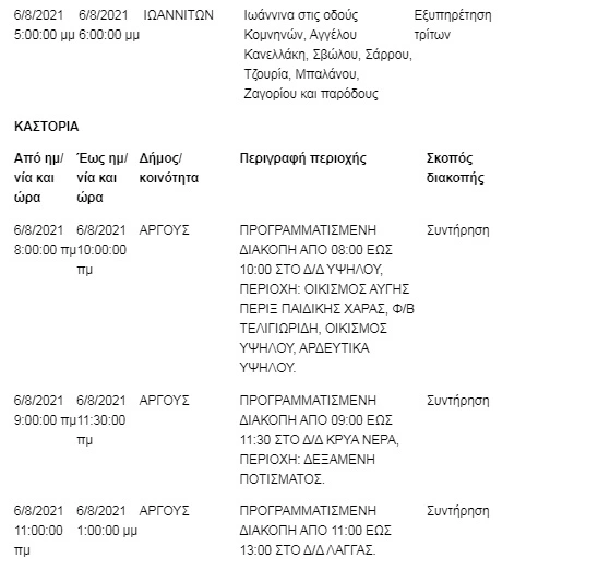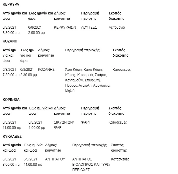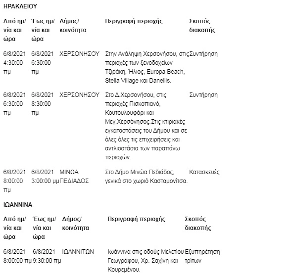 Δείτε στους πίνακες, τις περιοχές και τις ώρες που θα σημειωθεί διακοπή ρεύματος: