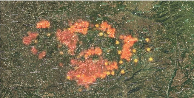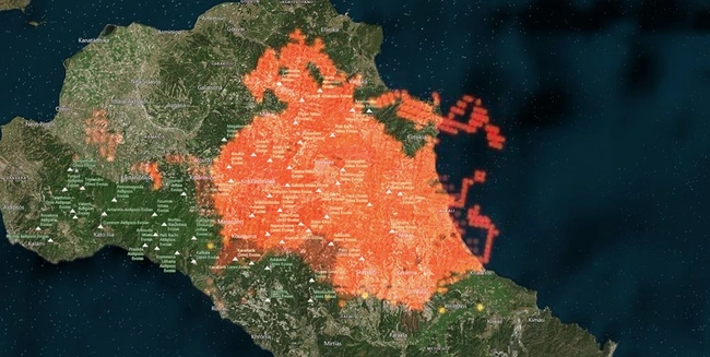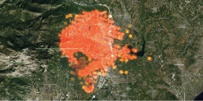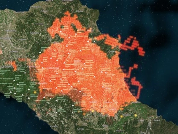 Η χώρα βρίσκεται αντιμέτωπη με πολλαπλά μέτωπα φωτιάς και οι εικόνες που μεταδίδονται από δορυφόρο, καταδεικνύουν το μέγεθος των πυρκαγιών που μαίνονται σε διάφορες περιοχές της ελληνικής επικράτειας. Ειδικά οι εικόνες από τη Βόρεια Εύβοια και την Αττική είναι ανατριχιαστικές. Τα μέτωπα είναι γιγαντιαίων διαστάσεων και στον σχετικό χάρτη απεικονίζεται το μεγάλο έδαφος που καταλαμβάνει αυτή η πύρινη κόλαση.