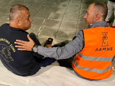 Τα άρβυλα του πυροσβέστη έλιωσαν από τις υψηλές θερμοκρασίες της φωτιάς και ο τεχνικός του Διαχειριστή, όπως φαίνεται στη φωτογραφία, έσπευσε να του δώσει τα δικά του, προκειμένου να ριχτεί ξανά στο μέτωπο κατά της πύρινης απειλής. Ο υπάλληλος του ΑΔΜΗΕ, λίγα λεπτά αργότερα, αφού αποχαιρετούσε τον πυροσβέστη με ένα άγγιγμα στην πλάτη, θα επέστρεφε στο δικό του πόστο για να χειριστεί τα φορτία ηλεκτρικής ενέργειας και να μην πέσει το ρεύμα στην Αττική.