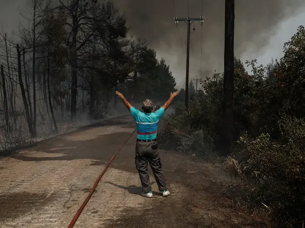 Οπως ανέφερε τότε η εφημερίδα, το μέτωπο στην Εύβοια -το οποίο είχε καταλήξει να κάψει 280.000 στρέμματα δάσους- είχε ξεσπάσει από τις 23 Αυγούστου. Οι μαινόμενες φλόγες με σύμμαχο τους ισχυρούς ανέμους είχαν οδηγήσει στην απόγνωση τους κατοίκους στα χωριά Στροφυλιά, Αμέλαντο, Στράφι, Κερασιά, Αγία Άννα και Μαντούδι, ενώ οι καμπάνες των χωριών καλούσαν τους πάντες σε γενική επιστράτευση.