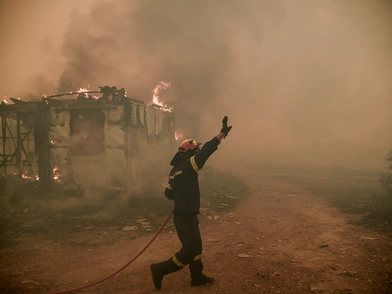 Παρατεταγμένα πυροσβεστικά, πυροσβέστες από Ελλάδα και Πολωνία και εθελοντές προσπαθούν να δημιουργήσουν ανάχωμα στη φωτιά στα Βίλια, προκειμένου να μην περάσει τον κεντρικό δρόμο της περιοχής, οδηγώντας τις φλόγες στον οικισμό. Η φορά των ανέμων έχει δημιουργήσει τεράστια προβλήματα, καθώς αλλάζει την πορεία της φωτιάς συνέχεια, με αποτέλεσμα η Πυροσβεστική να προσπαθεί να κυνηγήσει τις φλόγες ώστε να μην φτάσει η πυρκαγιά στα σπίτια. Μία εικόνα συγκλονιστική, που δείχνει το μέγεθος της φωτιάς στα Βίλια, που καίει για τρίτη ημέρα τεράστια έκταση δάσους.
