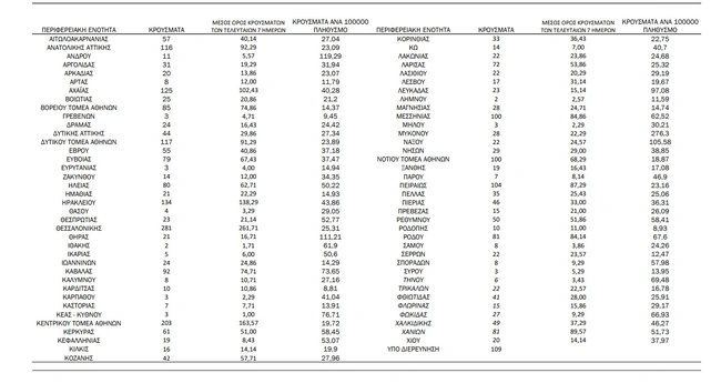 - Κεντρικός Τομέας Αθηνών: 203 κρούσματα