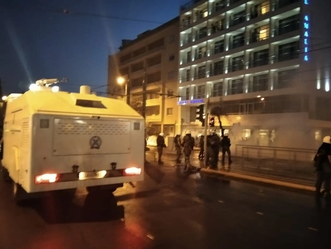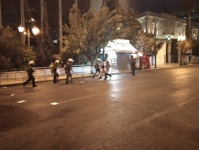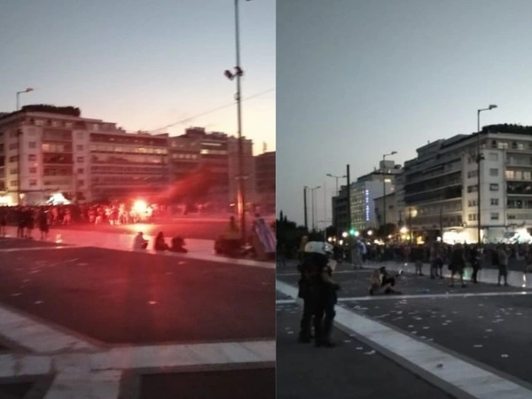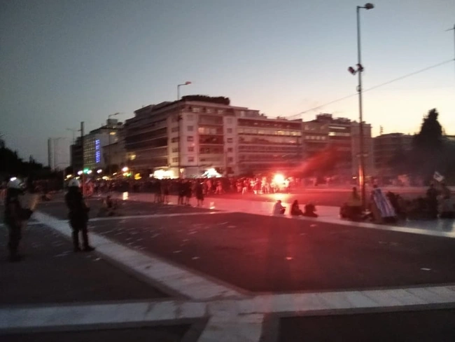 Εκτός ελέγχου είναι η κατάσταση στο Σύνταγμα, αφού λίγο πριν τις 20:30 της Κυριακής ξέσπασαν επεισόδια κατά τη διάρκεια της συγκέντρωσης των αντιεμβολιαστών. Περίπου 7 με 8 χιλιάδες τα άτομα συγκεντρώθηκαν σύμφωνα με την ΕΛ.ΑΣ. στο Σύνταγμα και το αποτέλεσμα ήταν να υπάρξει ένταση με φωτοβολίδες, μολότοφ και χημικά. Ο σταθμός του μετρό έκλεισε, ενώ ξέσπασαν και μικρές εστίες φωτιάς από κάδους που πήραν φωτιά από μολότοφ. Το πλήθος κατέβηκε την Ερμού, φωνάζοντας συνθήματα και ρίχνοντας αντικείμενα, με την πλατεία του Συντάγματος να έχει αδειάσει. Λίγη ώρα αργότερα τα επεισόδια τελείωσαν, όπως και η συγκέντρωση. Οι δρόμοι άδειασαν και παραδόθηκαν κανονικά στην κυκλοφορία, λίγο πριν από τις 9 το βράδυ.