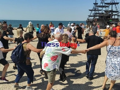 Μετά από συνεννόηση των δασκάλων της ομάδας, οι τουρίστες συνέρρευσαν και έκαναν κύκλο μπροστά από τον Λευκό Πύργο, χορεύοντας τον θρυλικό Ζορμπά με τη βοήθεια των ανθρώπων της ακαδημίας ζεϊμπέκικο Θεσσαλονίκης. Αμέσως μετά τον χορό οι τουρίστες και οι χορευτές ξέσπασαν σε χειροκροτήματα.