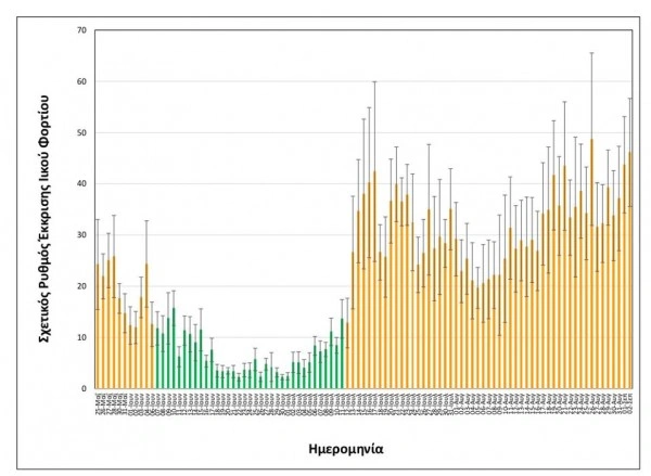 Συγκεκριμένα, στα δείγματα που λαμβάνονται καθημερινά στην είσοδο της εγκατάστασης Επεξεργασίας Λυμάτων Θεσσαλονίκης, αναφορικά με τις εξορθολογισμένες τιμές σχετικής έκκρισης ιικού φορτίου, η μέση τιμή των δύο πιο πρόσφατων μετρήσεων, δηλαδή της Τετάρτης, 1/09 και της Πέμπτης, 2/09 είναι: