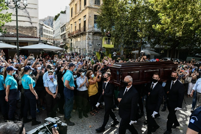 Με χειροκροτήματα και με τα δικά του τραγούδια πλήθος κόσμου συγκεντρώθηκε από νωρίς το μεσημέρι της Δευτέρας έξω από τη Μητρόπολη Αθηνών για να υποδεχθεί τη σορό του Μίκη Θεοδωράκη. Η σορός του Μίκη Θεοδωράκη έφθασε στο παρεκκλήσι του Αγίου Ελευθερίου με καθυστέρηση σχεδόν δύο ωρών, λόγω και νέων εμπλοκών, αυτή τη φορά μεταξύ των γραφείων τελετών.
