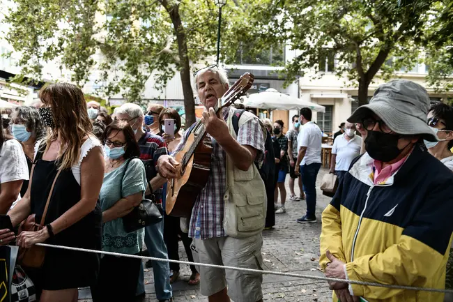Ο Γερμανός διευθυντής χορωδίας Χένινγκ Τσίρoγκ και συνεργάτης του Μίκη Θεοδωράκη από το Τίμπιγκεν, με την κιθάρα του και σε άψογα ελληνικά οργάνωσε ένα αυθόρμητο πρόγραμμα που συνεχίζεται, τραγουδώντας μαζί με τον κόσμο έξω από το παρεκκλήσι της Μητρόπολης. Μέσα στο παρεκκλήσι βρίσκεται ο Γιώργος Νταλάρας και η σύζυγος του, Άννα Νταλάρα. Από νωρίς, απλός κόσμος, Έλληνες και ξένοι διαφόρων ηλικιών, είχαν αρχίσει να συγκεντρώνονται γύρω από τη Μητρόπολη περιμένοντας να αποτίσουν φόρο τιμής στον μεγάλο συνθέτη.