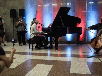 Συγκινητικές είναι οι εικόνες από εκδήλωση στο μετρό Συντάγματος, όπου αποδίδεται φόρος τιμής στον σπουδαίο μουσικοσυνθέτη Μίκη Θεοδωράκη, μέσα από τα τραγούδια του. Οι έμπειροι μουσικοί Βαγγέλης Μπόντας και Δημήτρης Γούζιος ερμηνεύουν τραγούδια του Μίκη, μεταξύ των οποίων τα χιλιοτραγουδισμένα: Αγάπη μου, Όμορφη πόλη, Μαργαρίτα μαγιοπούλα, Άρνηση και Νύχτα Μαγικιά. Μια πρωτοβουλία της ΣΤΑ.ΣΥ. που προσφέρεται από την Κρατική Ορχήστρα Αθηνών.