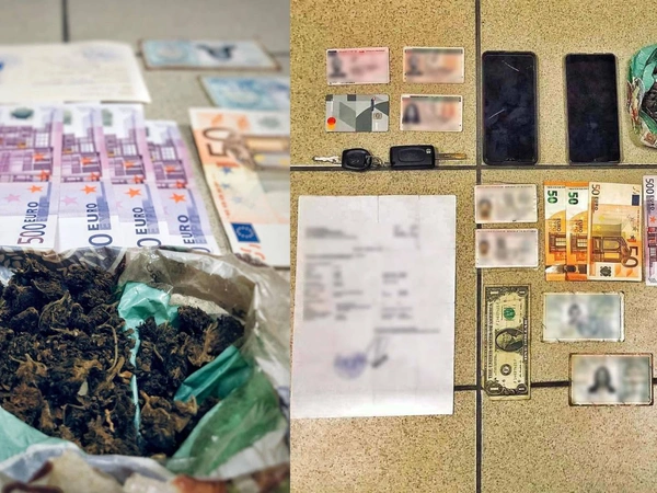 Σε έρευνα που πραγματοποιήθηκε στην οικία των συλληφθέντων παρουσία Δικαστικού Επιμελητή, βρέθηκαν και κατασχέθηκαν: πλαστά έγγραφα του 39χρονου κακοποιού, 2 συσκευές κινητής τηλεφωνίας, 2 μικροδέματα κάνναβης συνολικού βάρους 21,3 γραμμαρίων, 2 Δελτία Αστυνομικής Ελληνικής Ταυτότητας για τις οποίες προέκυψε ότι δηλώθηκαν οι απώλειές τους, βεβαίωση Εγγραφής Πολίτη κράτους μέλους Ευρωπαϊκής Ένωσης και το χρηματικό ποσό των 2.150 ευρώ.