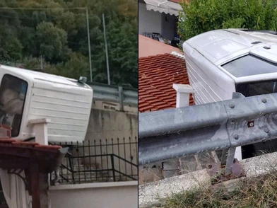 Ενα... παράδοξο τροχαίο σημειώθηκε το πρωί της Πέμπτης (9/9) στην Καβάλα, με ένα φορτηγάκι να φεύγει από το δρόμο και να καταλήγει σε στέγη σπιτιού! Συγκεκριμένα, ένα μικρό φορτηγό κινούμενο στον δρόμο του Παληού και στο ύψος Γλάστρες, εξετράπη της πορείας του και αφού προσέκρουσε σε προστατευτική μπάρα «προσγειώθηκε» πάνω στην στέγη ενός σπιτιού από την κάτω μεριά του δρόμου.