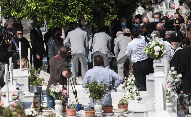 Στην τελευταία του διαδρομή προς το νεκροταφείο τον συνόδευε πλήθος κόσμου. Μεταξύ αυτών φίλοι και συνεργάτες, παιδιά και χωριανοί, γέροντες στα μπαλκόνια και τις αυλές σε κλίμα κατάνυξης. Η κηδεία έγινε σε στενό κύκλο, μεταξύ των συγγενών του. Οι καμπάνες χτυπούσαν πένθιμα και ο κόσμος φώναζε «αθάνατος» υποδεχόμενος το φέρετρο έξω από το κοιμητήριο.