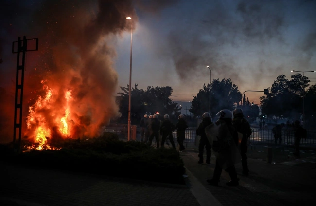 Οι διαδηλωτές προσπάθησαν να φτάσουν στο Βελλίδειο, όμως η Αστυνομία είχε δημιουργήσει φραγμό, ενώ έκανε χρήση της αύρας και χημικών. Από την πλευρά τους οι διαδηλωτές εκτόξευσαν μολότοφ και αντικέιμενα προς τους αστυνομικούς.