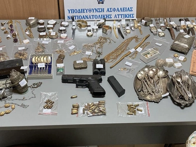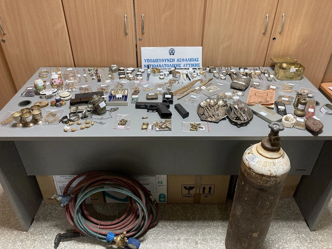 Εκεί, κατασχέθηκαν ένα λειτουργικό πυροβόλο όπλο (πιστόλι) μάρκας GLOCK , το οποίο είχε κλαπεί το έτος 2015, πλήθος φυσιγγίων πυροβόλων όπλων διαφόρων διαμετρημάτων, ένα πλήρες σύστημα οξυγονοκόλλησης για τη διάνοιξη χρηματοκιβωτίων, μεγάλος αριθμός κοσμημάτων και χρυσαφικών, συσκευές κινητής τηλεφωνίας, χρησιμοποιημένες κάρτες sim καθώς και πέντε (5) φιαλίδια με χημική ουσία για την ανίχνευση περιεκτικότητας χρυσού.