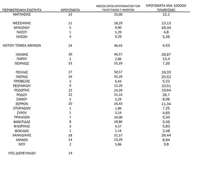 - Ανατολική Αττική: 29 κρούσματα