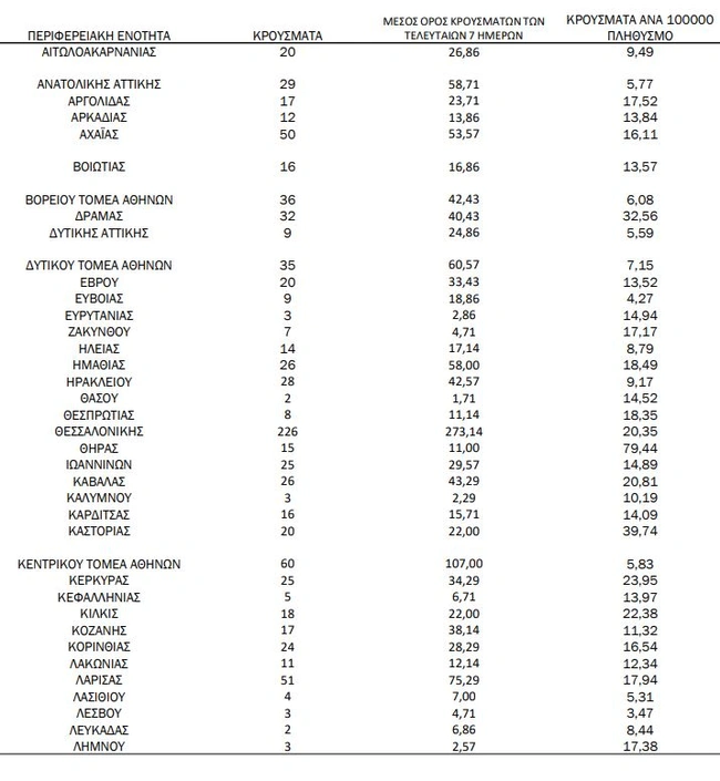 Τα κρούσματα στις περιφερειακές ενότητες που ανήκουν στην Αττική: