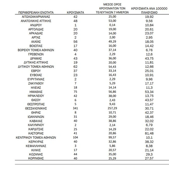 Τα κρούσματα στις περιφερειακές ενότητες που ανήκουν στην Αττική: