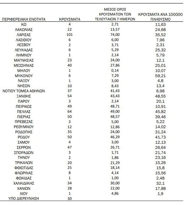 - Κεντρικός Τομέας Αθηνών: 104 κρούσματα