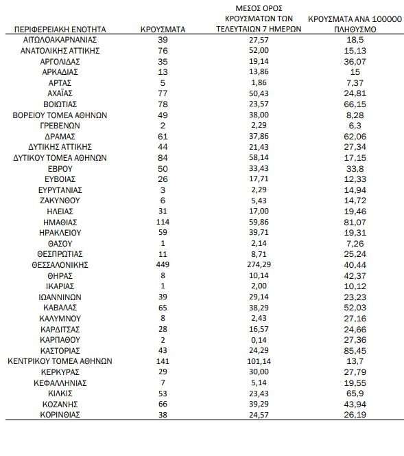Τα κρούσματα στις περιφερειακές ενότητες που ανήκουν στην Αττική: