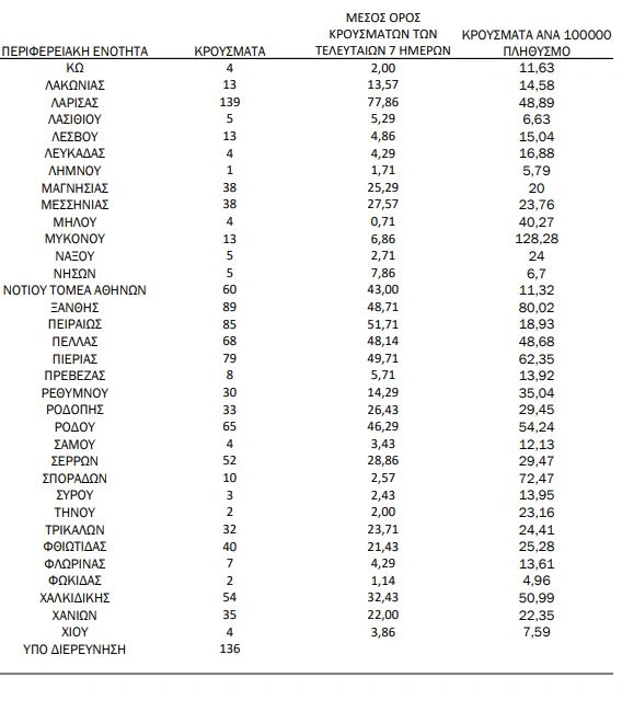 - Κεντρικός Τομέας Αθηνών: 141 κρούσματα