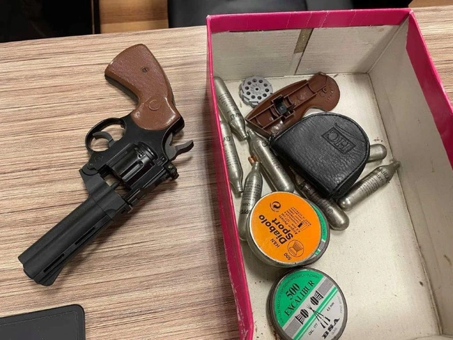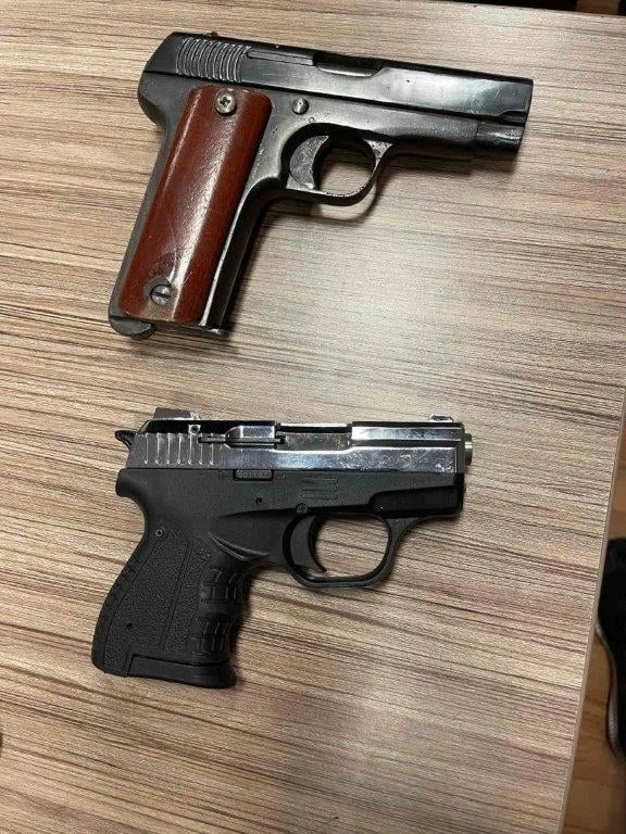 Παράλληλα στις έρευνες που πραγματοποιήθηκαν βρέθηκαν συνολικά και κατασχέθηκαν, 3 πιστόλια με 3 γεμιστήρες, αεροβόλο πιστόλι με αμπούλες προωθητικού αερίου, 2 μαχαίρια, μεταλλικό ρόπαλο, 5 κινητά τηλέφωνα, όπως θα δείτε και στις φωτογραφίες παρακάτω, καθώς και 2 αυτοκίνητα και μοτοσυκλέτα τα οποία είχαν χρησιμοποιηθεί ως μέσα μετάβασης και διαφυγής