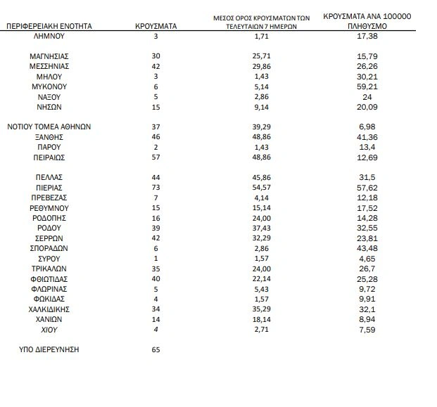 - Νήσων: 15 κρούσματα
