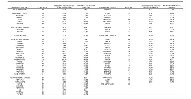 Τα κρούσματα στις περιφερειακές ενότητες που ανήκουν στην Αττική: