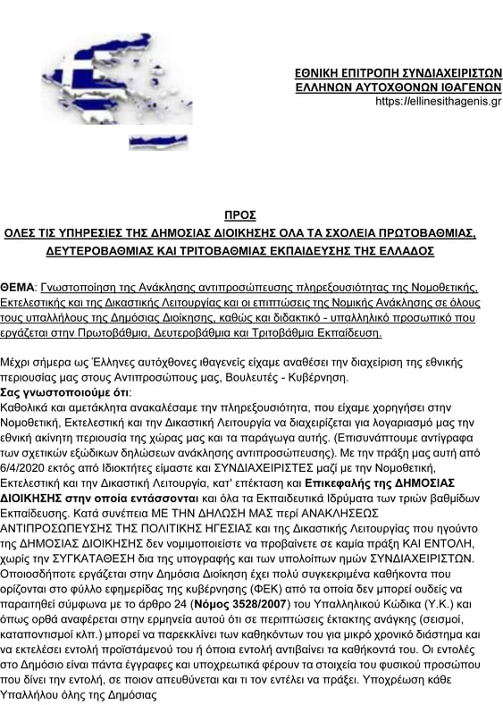 Πρόκειται για έγγραφα όπου χρησιμοποιούν ορολογία περί αυτοχθόνων Ελλήνων ιθαγενών, που «δικαιούνται να επιβάλλουν πρόστιμα» από 5.000 έως 5 εκατομμύρια ευρώ σε όσους επιχειρούν να... επιβάλλουν τα μέτρα ενάντια στη διασπορά του κορονοϊού. Για την υπόθεση θα υπάρξουν επίσημες ανακοινώσεις από την Αστυνομία την Τρίτη.